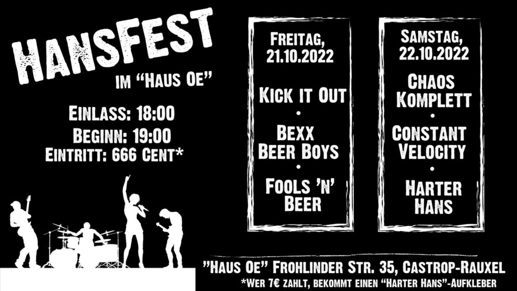 Categories Allgemein Hansfest 22 Post author By harterhans-admin Post date September 29, 2022 Hansfest 22 Wir sehen uns auf dem Hansfest 2022. Immer Hart! Tags Gig, Haus Oe